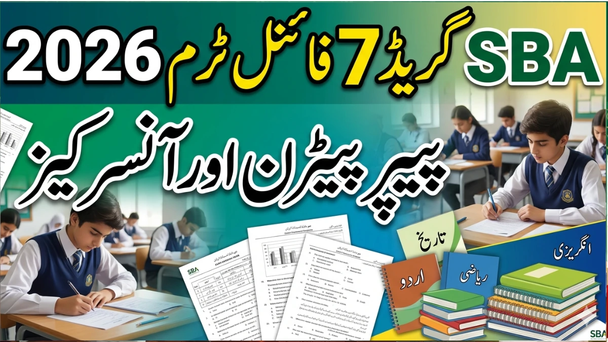 SBA 2026 Grade 7 Final Term Papers :The School Based Assessment (SBA) 2026 Grade 7 Final Term exams will begin in March 2026 in government schools throughout Punjab. These assessments are conducted under the supervision of the Punjab School Education Department and implemented through the Punjab Education Curriculum, Training and Assessment Authority (PECTAA).